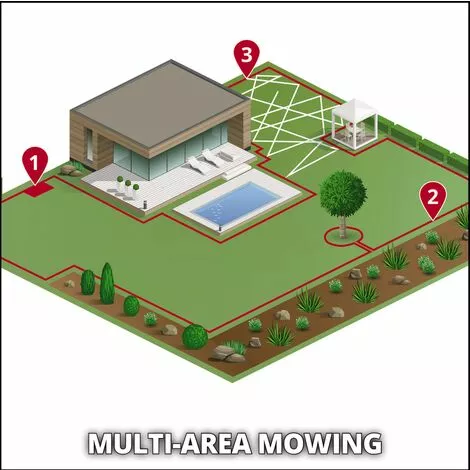 - Grâce au mode multizones, ce robot-tondeuse est également adapté à des jardins complexes et sinueux.