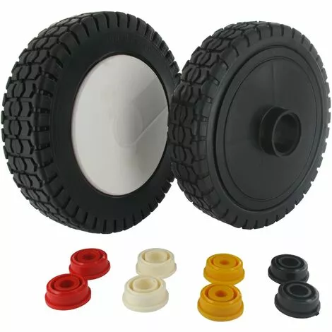Roue en plastique universelle sur Bague – Ø: ext: 180mm – Livrée avec enjoliveur et 4 jeux de Bagues de réduction 8, 10, 12 et 12,7mm