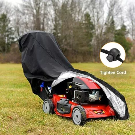 Design coupe-vent : le bas de la housse de tondeuse gazon dispose dune corde qui peut tre serre. Empche la housse de votre tondeuse d’tre emporte par le vent.
